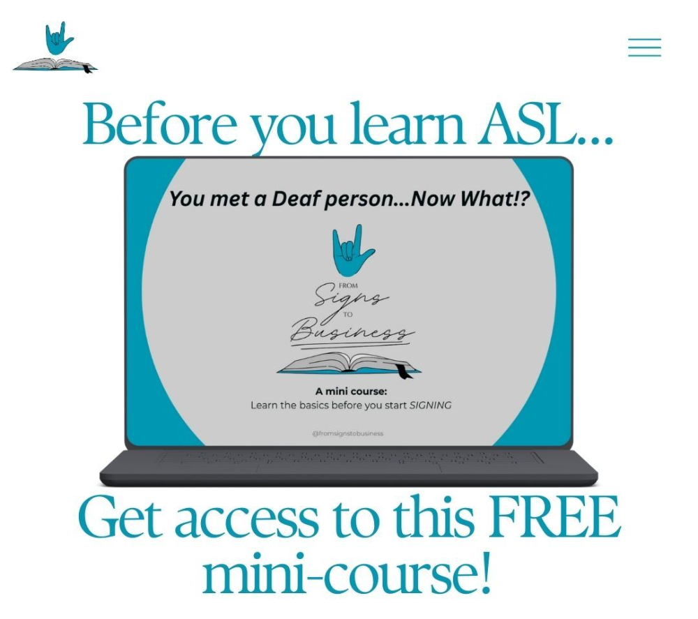 Before you SIGN let's learn the why it matters to learn ASL, how it works, and what you should know before you learn the signs. With this guide you'll get a real understanding on how to respectfully engage in authentic conversations with a deaf person. By the end of this mini course you will be curious to know more and take on the challenge to join the allyship of Deaf awareness. See you there!